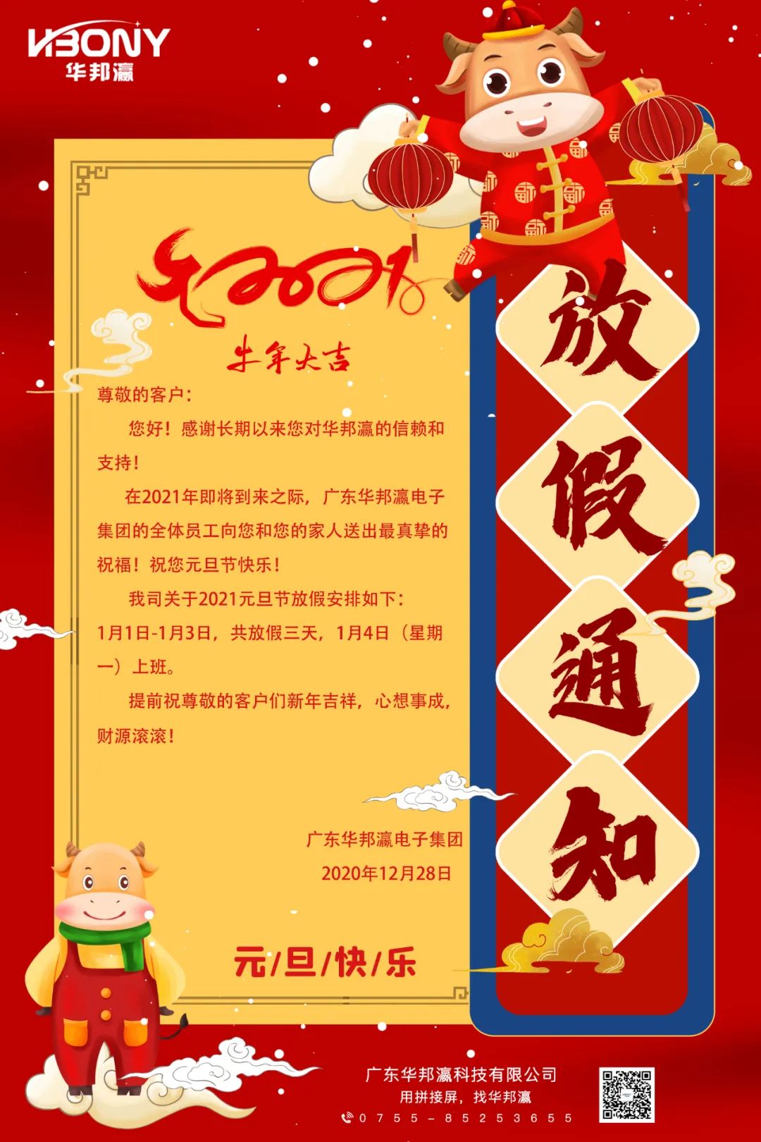 往事清零,萬事如意,萬物更新,舊疾當愈;華邦瀛愿你在即將到來的2021年心想事成,大吉大利!